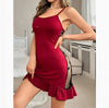Alvfrid er kjolen som får deg til å føle deg uimotståelig. Med sitt kroppsnære snitt, delikate blondedetaljer i siden og lekre rysjer nederst, gir den deg både selvtillit og eleganse i samme øyeblikk. Perfekt for en romantisk kveld, fest eller når du vil gjøre ekstra inntrykk.