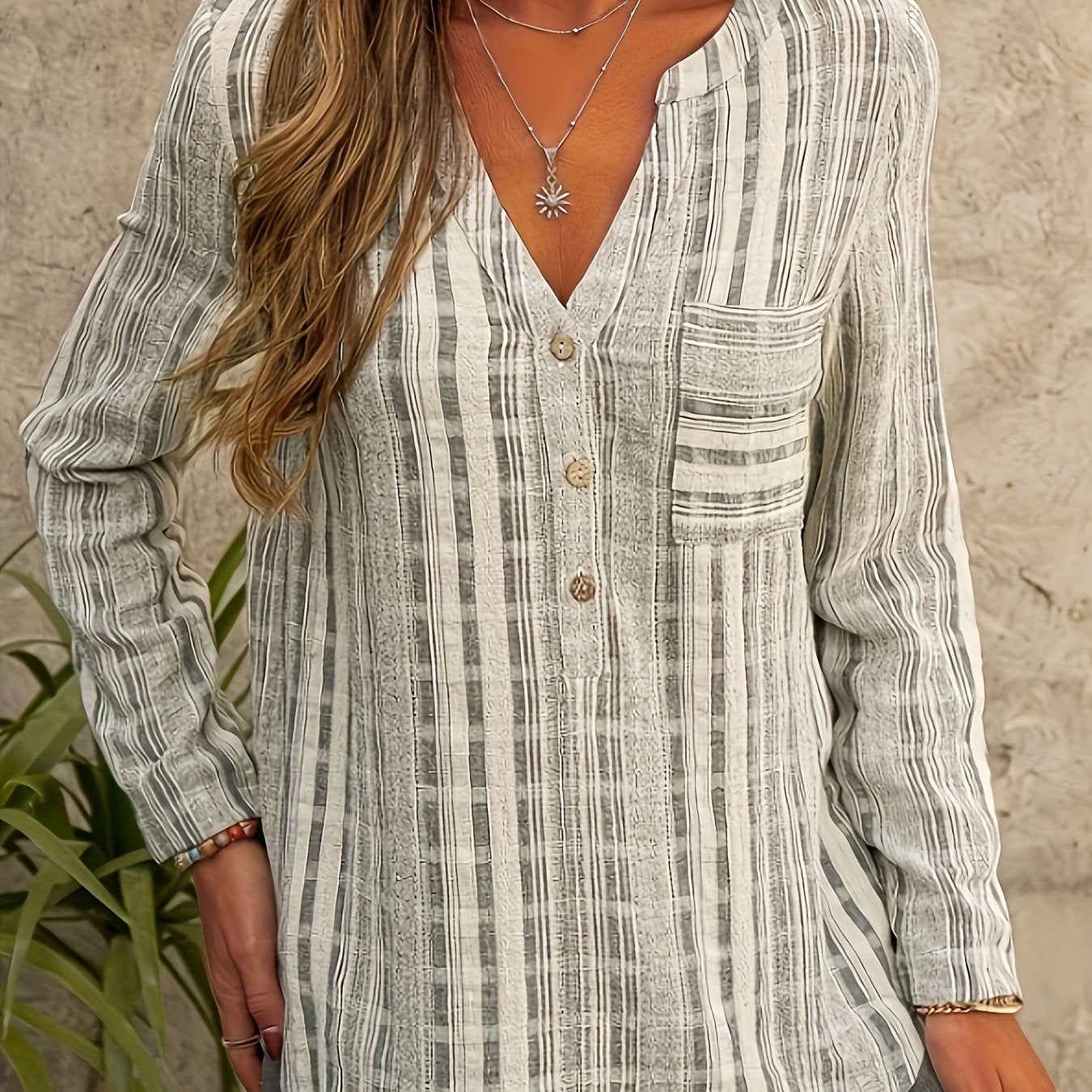 Billa-blusen er laget for deg som elsker et rent, tidløst uttrykk med en rustikk touch. De vertikale stripene gir et slankende og moderne preg, mens brystlommen og knappene gir praktiske detaljer. Laget i et lett og pustende stoff, perfekt for både vår, sommer og lag-på-lag om høsten.