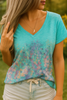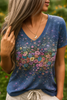 Bodil | 74V-hals blomstret kunst t-skjorte