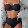 Dette lyseblå bikinisettet kombinerer stil og komfort for et frisk, selvsikkert sommerutseende som fremhever din naturlige skjønnhet.
