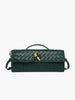 En veske med intrikat flettemønster og sofistikerte detaljer som gir et eksklusivt uttrykk. Den slanke fasongen gjør den ideell til både dag- og kveldsbruk, mens de gullfargede elementene tilfører et elegant preg.