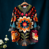 Dame Retro Blomstertrykk Casual V-hals Skjorte