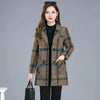 Denne lange blazer-kåpen har et raffinert rutemønster med dobbeltradet front og brede, notched lapels. Designet med en rett snitt og midt-lår lengde, tilbyr den både struktur og varme. De full-lengde ermene og romslige silhuetten gjør den enkel å ha over kjoler eller strikk.