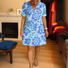 Edel-kjolen er din nye sommerfavoritt – perfekt for alt fra hagefester til ferie og hverdagsbruk. Med sitt livlige blå blomsterprint, korte ermer og komfortable snitt gir den deg både stil og bevegelsesfrihet. Den lette, pustende kvaliteten gjør at du føler deg like bra som du ser ut – hele dagen.
