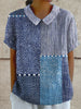 Ella | Lappeteppe Trykket Skjorte kombinerer en rekke stilige mønstre i nyanser av marineblått og blått, og skaper et moderne og lekent utseende. Blandingen av striper, prikker og rutemønster gir en unik, kunstnerisk stil til garderoben din, noe som gjør den til et allsidig plagg som kan styles opp eller ned. Tenk deg å bruke den på en morsom dag med brunch med venner, der designet vekker samtale og beundring.