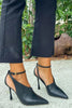 Elmina er selve definisjonen på selvsikker stil. Med en spiss tå, markant utskjæring og slank stiletthæl utstråler den kraft og eleganse i perfekt balanse. Den sorte finishen gjør skoen til en tidløs klassiker – med et edgy preg.