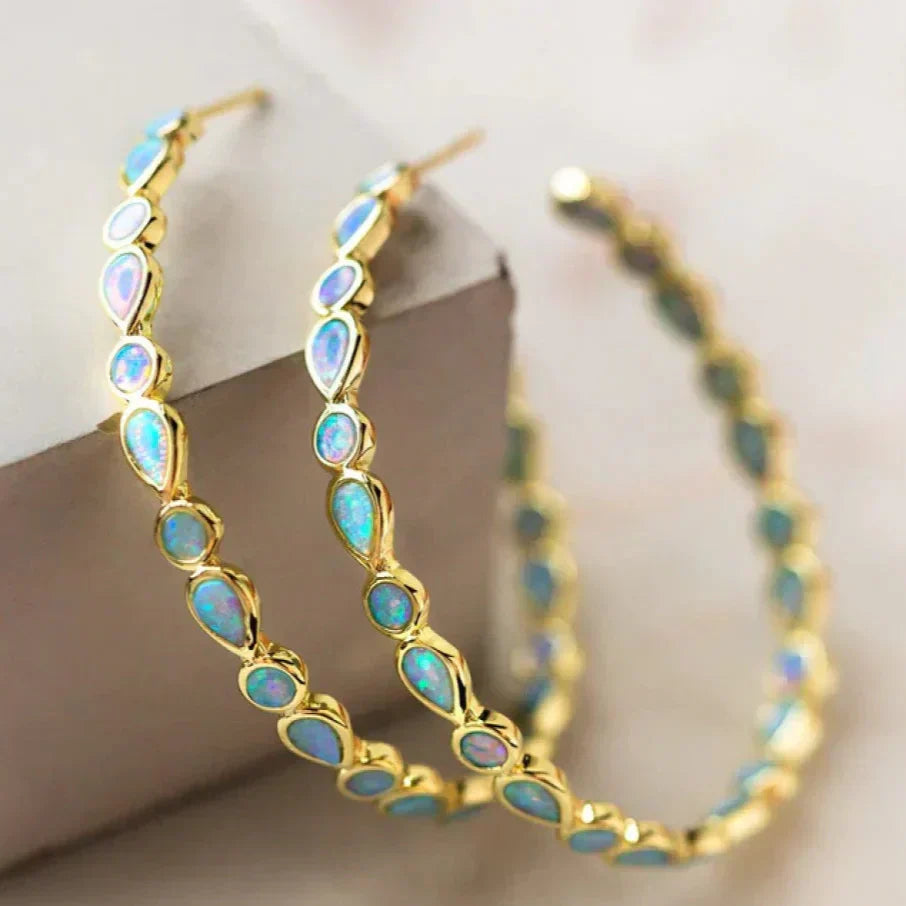 Emmeline - Vintage Blå Opal Gyldne Øreringer