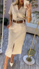 Erna er kjolen som kombinerer et tidløst snitt med moderne detaljer. Den medfølgende beltet markerer midjen på en flatterende måte, mens knappene foran tilfører et sofistikert preg. En perfekt kjole for både jobb, middager og mer spesielle anledninger.
