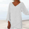 - Asymmetrisk eleganse: Drapert kant og diagonale striper smigrer figuren din med flytende bevegelse og myk struktur.