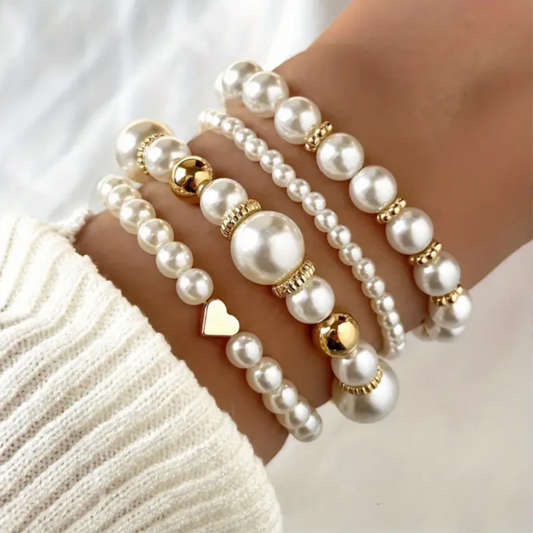 Et sofistikert armbåndsett som kombinerer klassiske perler med moderne detaljer. Perfekt å bruke sammen eller hver for seg for å skape ulike uttrykk. Harmony-settet består av fem armbånd som balanserer tidløs eleganse med et hint av luksus. Designet gir et feminint og stilsikkert preg som passer enhver anledning.