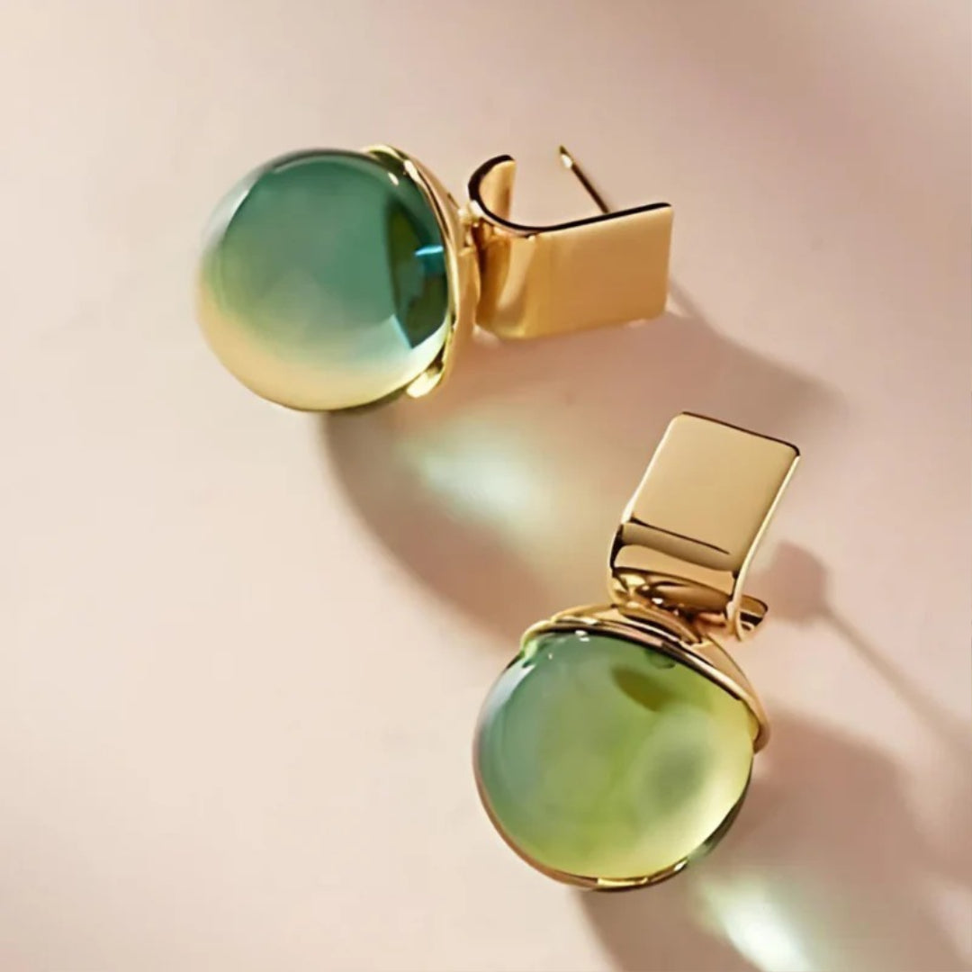 Idunn | Gulløredobber med Grønn Edelsten