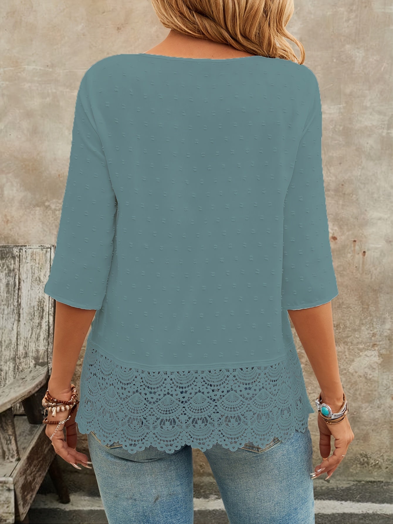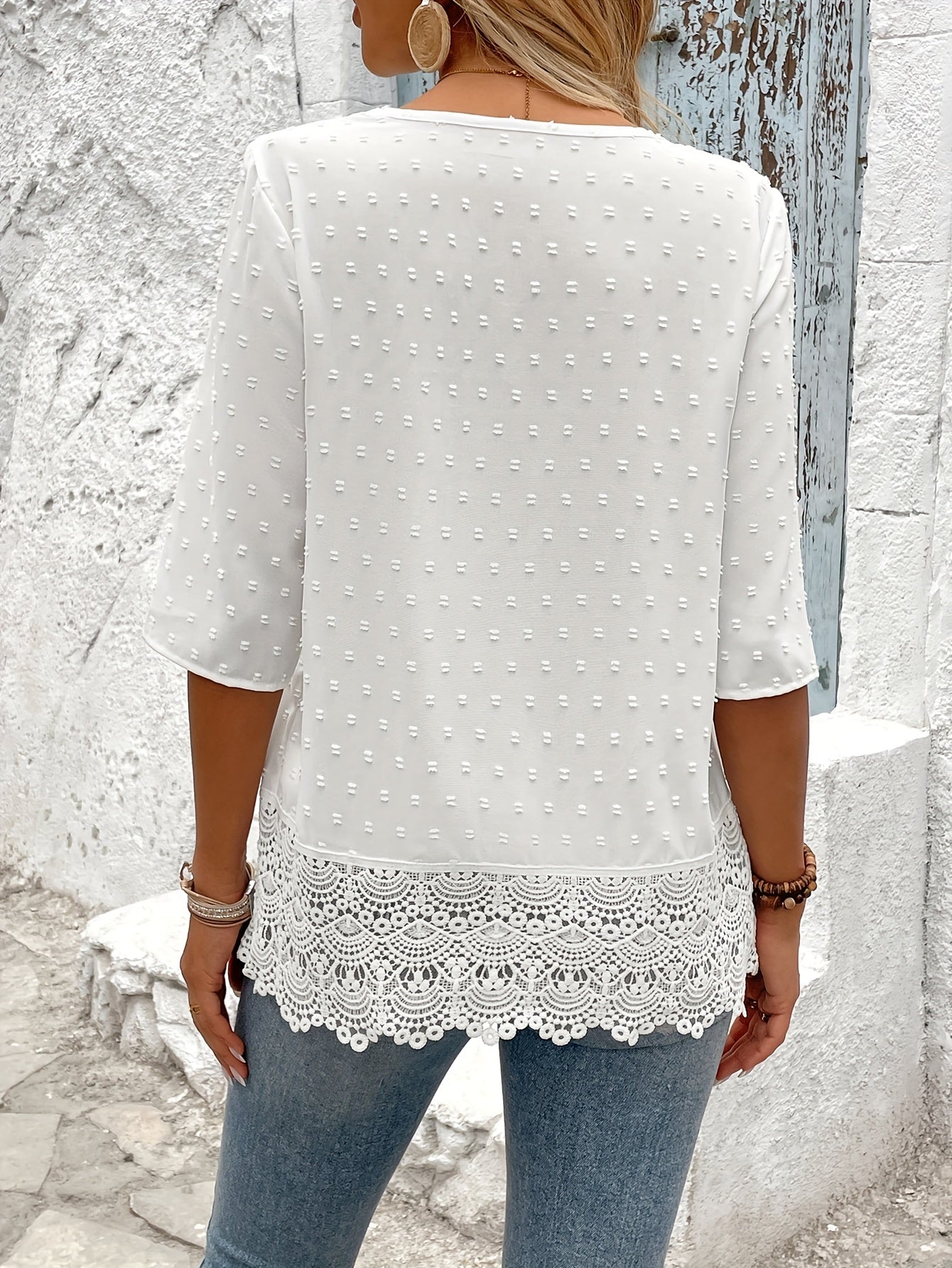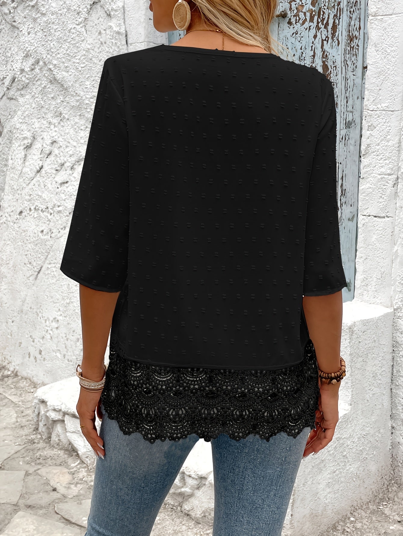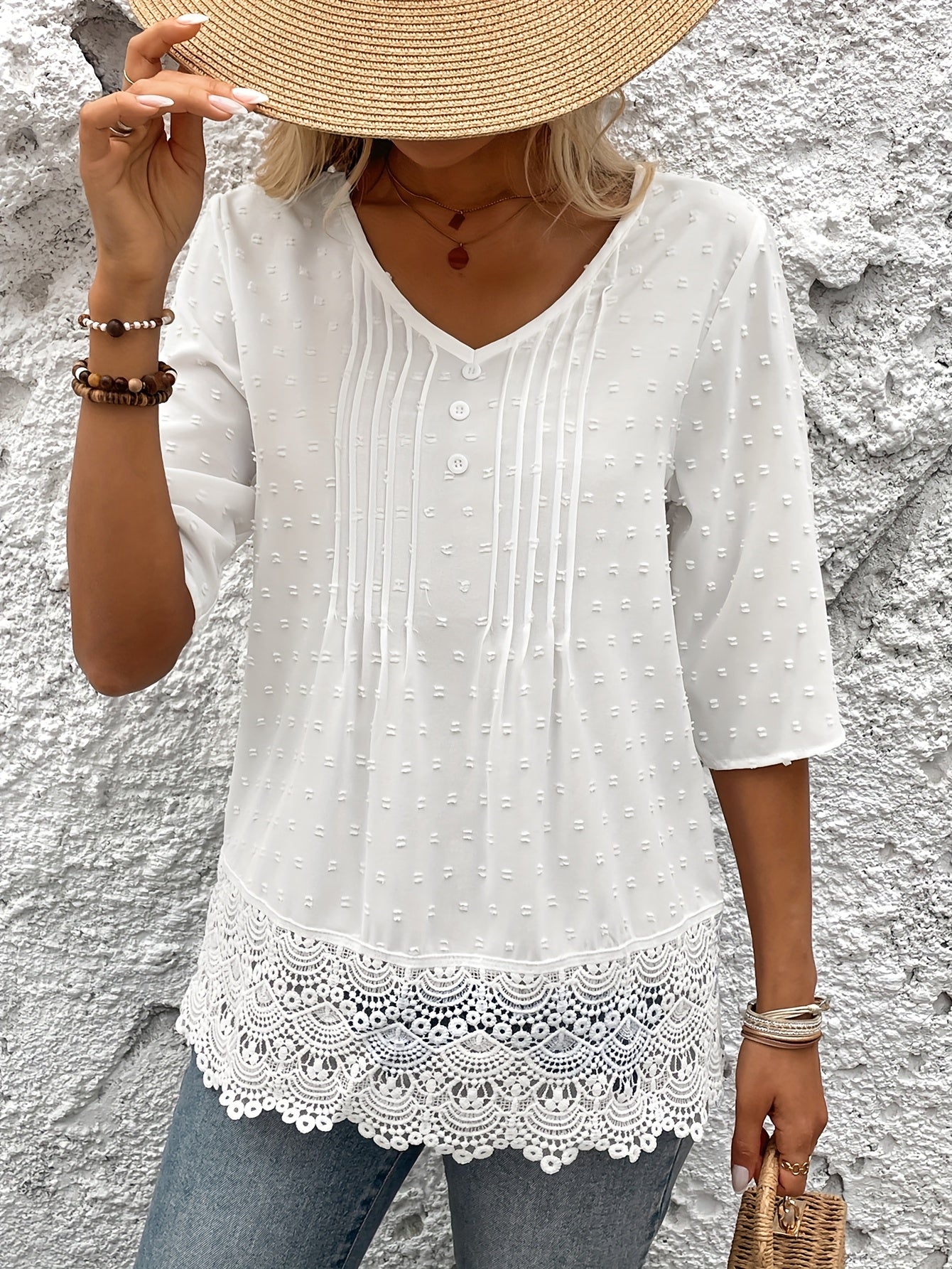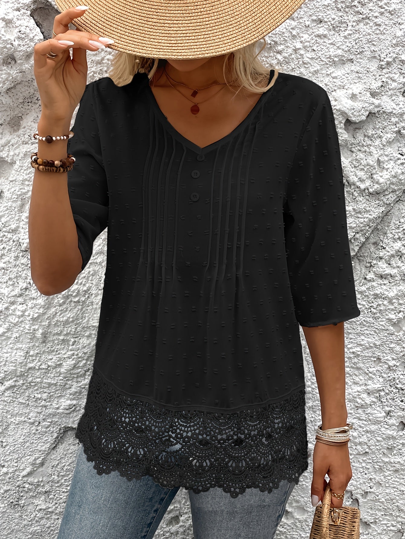 Jytte | Romantisk topp med blondekant og strukturdetaljer