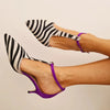 Kariola | Spisse hæler med sebramønster og lilla kontrast