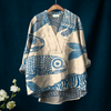 Kvinnes Blå Minimalistisk Linje Fisketrykk Casual V-hals Skjorte