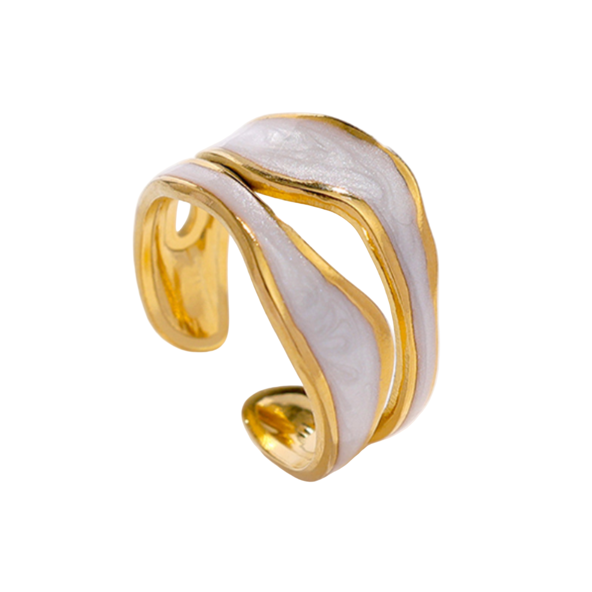 En moderne ring inspirert av havets bølgende bevegelser, med et unikt og kunstnerisk preg.
