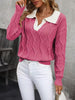 Marte | Klassisk Kabelstrikket Genser Med Kontrastkrage