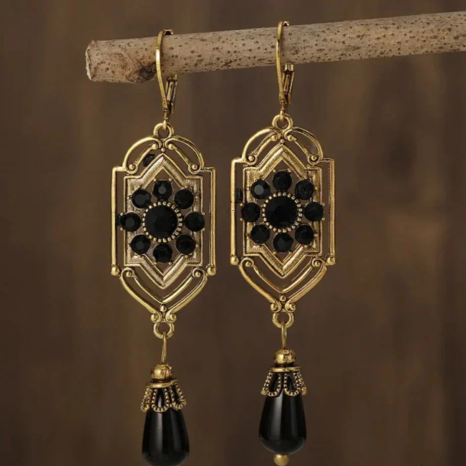 Paisleigh – Vintage svarte hengende krystalløredobber