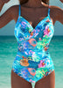 Føl deg umiddelbart strålende og unik på stranden med denne iøynefallende badedrakten i frisk cyanblå farge og livlig print!