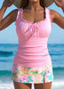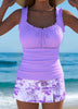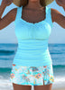Vilde | Elegant Cyan Tankini med Tropiske Planteprint og Høyt Liv